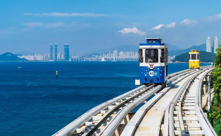 Trải nghiệm đi tàu điện ven biển Haeundae - nơi khách du lịch có thể ngắm toàn cảnh bãi biển Haeundae từ trên cao siêu đẹp ở Busan.