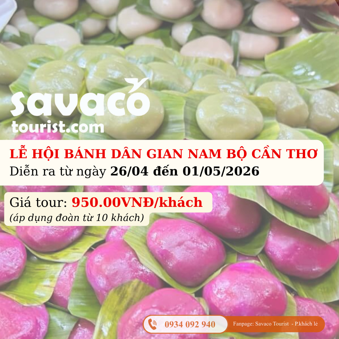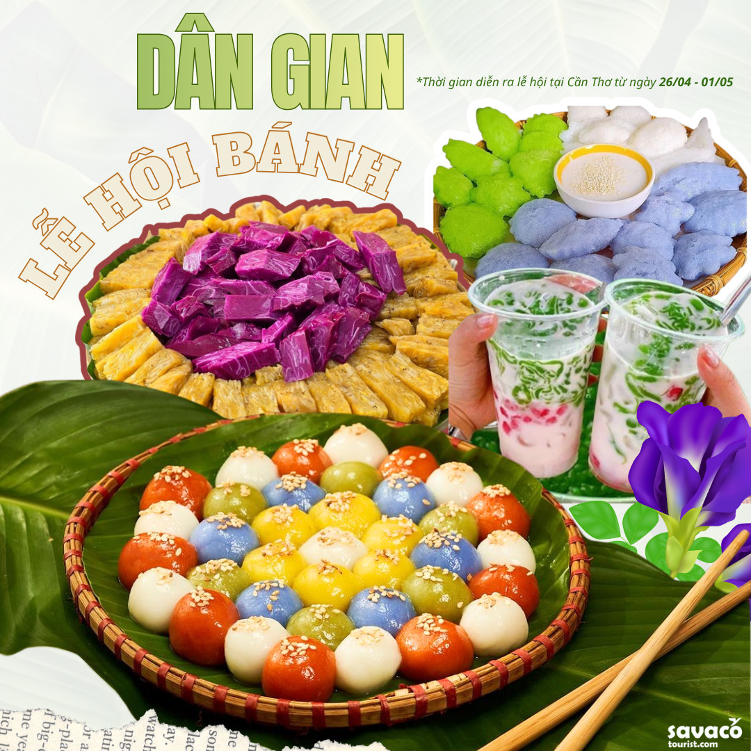 Sau đó, tiếp tục di chuyển đi Cần Thơ, đến với LỄ HỘI BÁNH DÂN GIAN NAM BỘ - Sự kiện văn hóa ẩm thực đặc sắc của miền Tây, nơi du khách có thể thưởng thức nhiều loại bánh dân gian truyền thống, xem nghệ nhân biểu diễn làm bánh và check-in trong không gian lễ hội sôi động.